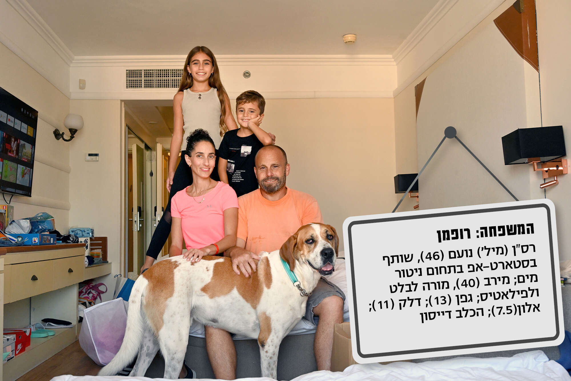 משפחת רופמן מקיבוץ ניר עם פונתה למלון הרודס בתל אביב • האב נועם: "הילדים נפגעו בלימודים ואשתי על אפס הכנסה" • מדור חדש: "ישראל היום" מלווה את המפונים