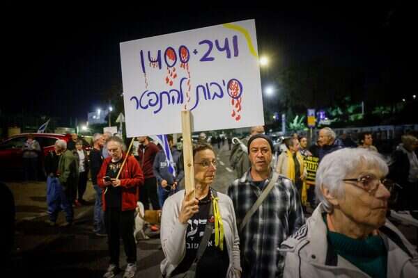 מאות מתושבי העוטף, בני משפחות שכולות ומתנגדי הממשלה מפגינים הערב (שלישי) סמוך לכנסת בדרישה מראש הממשלה בנימין נתניהו להתפטר לאלתר.