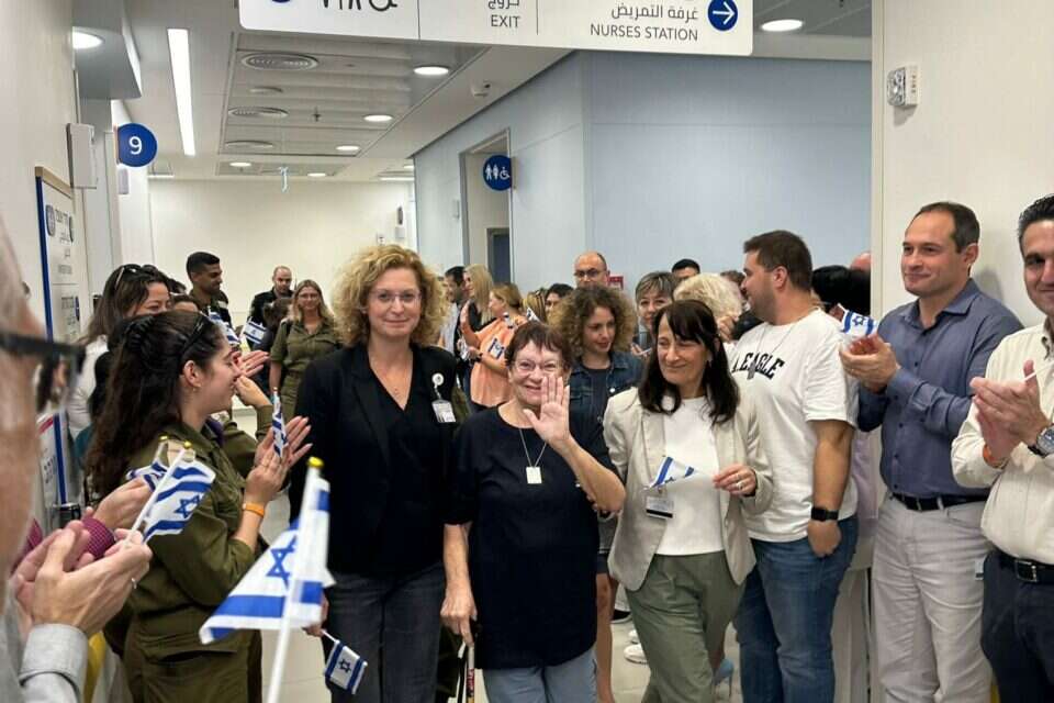 רגעים מרגשים בוולפסון: חנה פרי מקיבוץ נירים, ששוחררה משבי חמאס אחרי 49 ימים, שוחררה היום (ראשון) מאשפוזה במרכז הרפואי וולפסון כשהיא מלווה במנכ״לית ביה״ח, ד״ר ענת אנגל, ומנהלת הסיעוד, אורנה צבי. מסביב צוות המחלקה ובני משפחתה של חנה פרי הריעו לה כשהם אוחזים בדגלי ישראל.