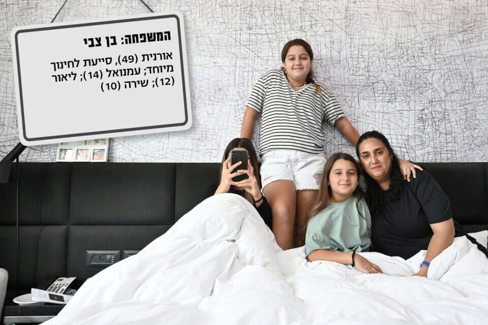 אורנית: "כמשפחה אנחנו לא במקום הטבעי שלנו. יש לי שלוש בנות, וכל אחת עם הדרישות, הרצונות והחרדות שלה. זה סיר לחץ, ואין רגע שקט. כאן זה הלא נודע. הת פניתי בעצמי כחלק מקבוצה של חד הוריות, בגלל החשש לילדים. אין לי ממ"ד בבית, ויש לנו שמונה שניות להגיע למקלט, שהוא בכלל לא תקין. כששמענו מה עשו המחבלים בעוטף אף אחת מאיתנו לא הצליחה לישון. נשארתי ערה כמו שומר. אנחנו גרות ליד הר, ודמיינתי איך מחבלים יורדים אלינו משם. שמתי ספות כנגד הדלת ואטמתי את החלונות. בגלל המצב אני לא עובדת, אז לא היתה סיבה להישאר בקריית שמונה".
