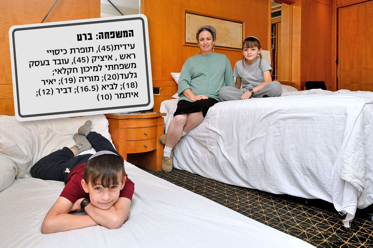 "אני אוהבת שקט. אין לי בעיה לשהות בחדר במלון ולפגוש חברות בחדר האוכל. אני לא אוהבת את השאון של העיר, ורק בשביל הילדים אני מטיילת איתם בירושלים. אני לא בודקת כל הזמן היכן נפגעתי מהפינוי ומחפשת רק את היתרונות. למשל, אני לא צריכה לבשל ולא צריכה לשבור את הראש כל יום מה אכין לשישה ילדים.