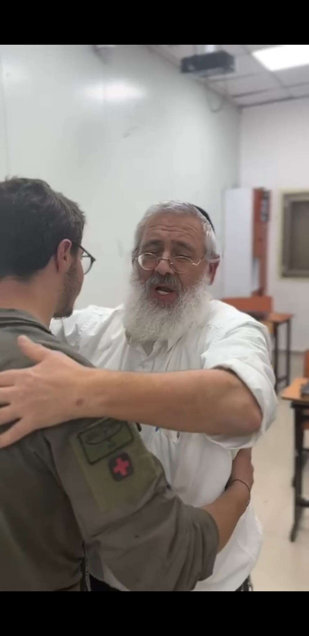 היום (חמישי), הוא הגיע לבית הכנסת בו לומד אביו, שגם היה צנחן בצעירותו, והפתיע אותו.