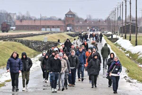 ולמחרת, בבירקנאו, רבי מנחם מרגולין, מקים ה־EJA ונשיאו, יגיד שיש עכשיו אותה בורות ואותה שנאה כמו לפני ההשמדה הגדולה, ואז יזמין את מנהיגי העולם להפוך לשגרירים נגד השנאה והבורות בארצם. וראובן ריבלין, נשיא המדינה לשעבר, יביט בהם ויאמר "אם העולם לא עומד לצידנו, לפחות שלא יפריע כשאנחנו מגינים על עצמנו". ואז, בזה אחר זה, מנהיגי אירופה ירכינו ראש ויניחו זרים יפים ליד שרידי המשרפות, תחת השמיים הלבנים של אושוויץ־בירקנאו.