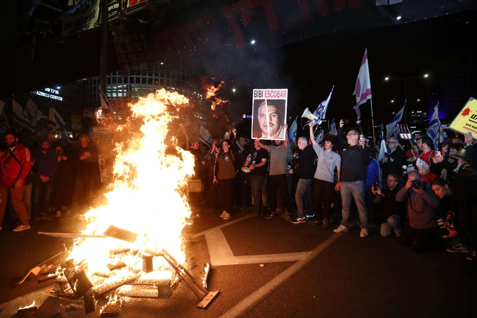 לילה של מחאות במרכז תל אביב: מאות מפגינים מ"אחים לנשק" ומשפחות החטופים חסמו הערב (מוצ"ש) את איילון צצםון וכביש בגין לכיוון צפון בסמוך לשער הקריה. מכת"זית הופעלה על מנת לפזר את המפגינים. בקיסריה נעצרו ארבעה מפגינים בגין הפרת הסדר הציבורי ובירושלים שניים נוספים.
