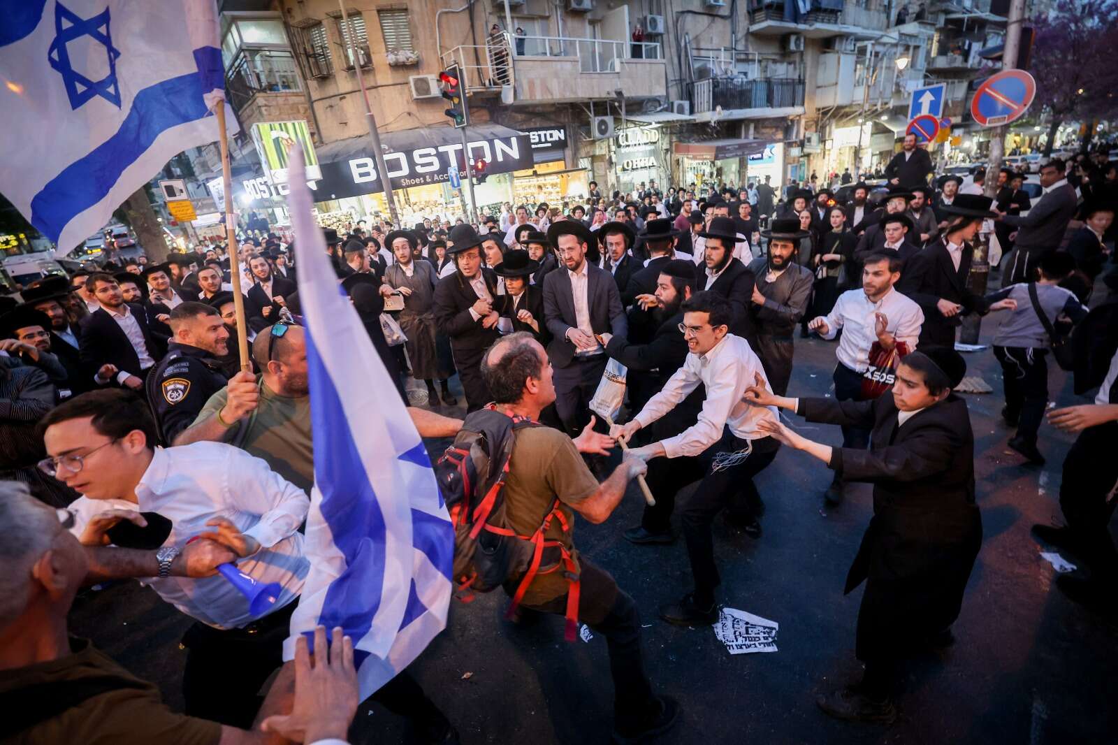במקום התפתחו מהומות בין הפעילים לתושבים שהשליכו ביצים וחפצים. מהמשטרה נמסר: "לפני זמן קצר במקביל להפגנה מתואמת שהחלה באזור הכנסת במתחם המחאות המוגדר לכך, הגיעו כמה עשרות מוחים לאזור כיכר השבת בירושלים, חסמו את ציר התנועה במקום בניגוד לחוק והחלו להתעמת עם תושבי האזור, שהתקהלו במקום, תוך הפרת הסדר הציבורי. במקום נוצר חיכוך בין הצדדים, וכוחות משטרה פעלו לחצוץ בין הניצים, למנוע מעשי אלימות ולהדוף את המתפרעים.