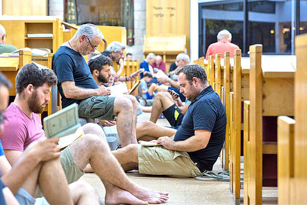 עשרות מתפללים ישבו אתמול בערב על רצפת בית הכנסת של קיבוץ עלומים, וספרונים בידיהם - כמו בכל שנה, וכמו שלא היה באף שנה אחרת.