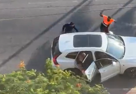 בתיעוד מהאירוע ניתן לראות את אחד החשודים אף מכה באלימות באדם שיושב בתוך הרכב עם חפץ קהה.
