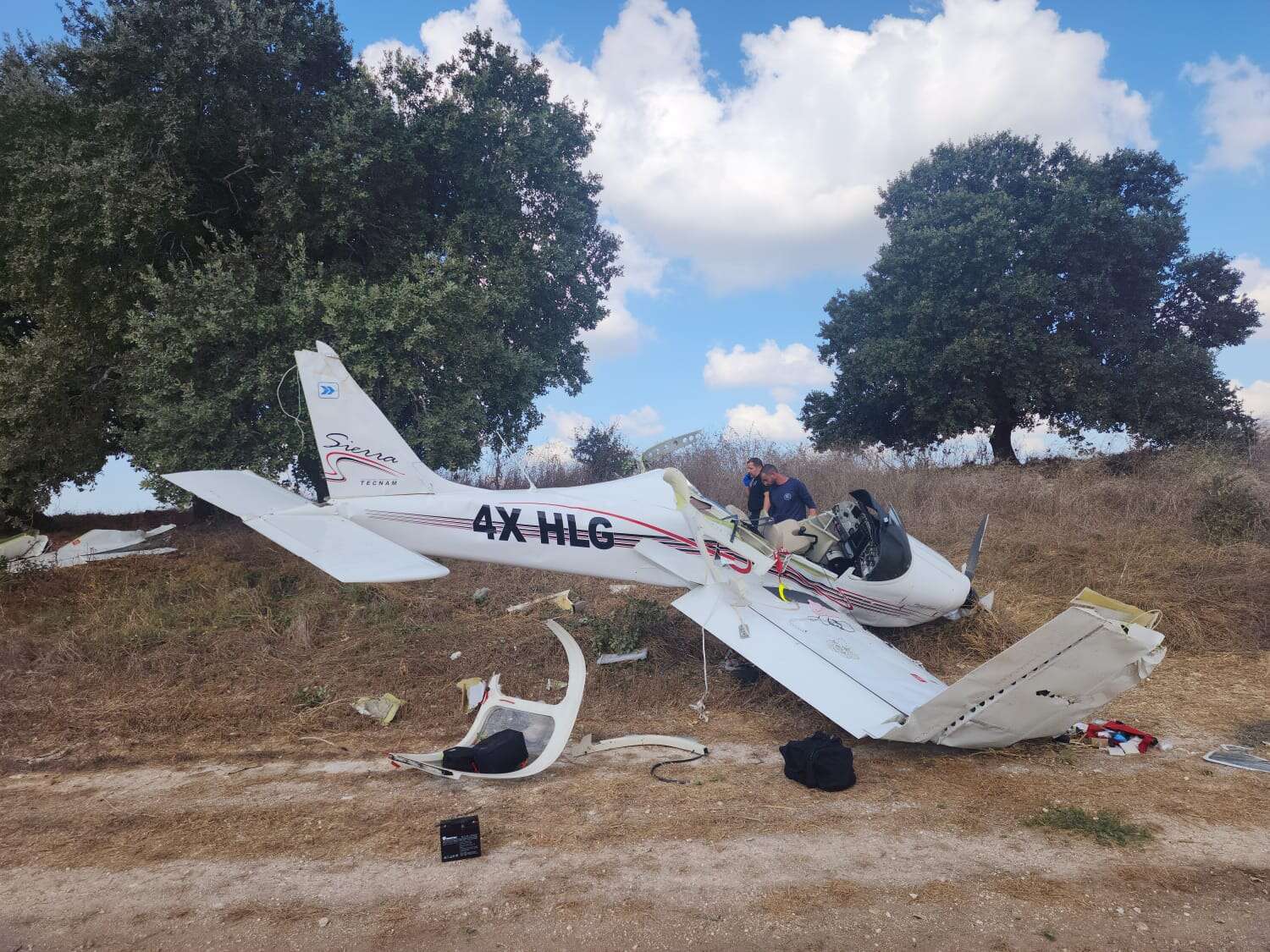 חובש מד"א שהגיע לזירה: "הגענו למקום עם אמבולנסים, ניידות טיפול נמרץ, אופנועים ומסוק מד"א. מדובר במנחת בשטח סמוך לכביש 6, ראינו סמוך למסלול את המטוס הקל כשאחד משני האנשים שהיו במטוס חילץ את עצמו ויצא והשני היה לכוד מטוס. הענקנו לפצוע שהתהלך טיפול רפואי, הוא סבל מחבלה בראש ומיד העברנו אותו לצוות מסוק מד"א שנחת בסמוך ופינה אותו לבית החולים. יחד עם הפראמדיקים מצוות מסוק מד"א ביצענו בדיקות רפואיות וקבענו את מותו של האדם השני שהיה במטוס".