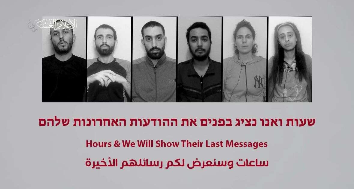 15:26: חמאס פרסם סרטון עם תיעודים של דבריהם של החטופים שנרצחו במנהרה ברפיח.