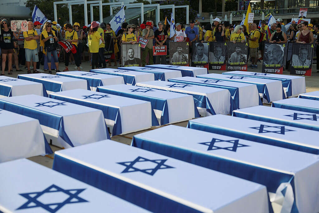 עם ארונות מכוסים דגלי ישראל ובחולצות צהובות: המונים מפגינים ברחבי הארץ למען החזרת החטופים
