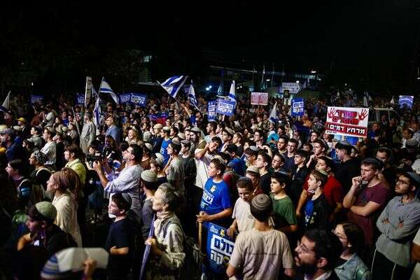 אלפי מפגינים משתתפים הערב (חמישי) במחאה בירושלים, שהתכנסה סמוך לבית המשפט העליון והגיעה מול הכנסת, בדרישה: ״להכריע את חמאס למען שחרור כל החטופים״.