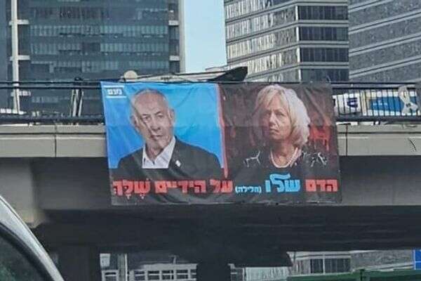 לאחר שאתמול (יום ראשון) שר התקשורת שלמה קרעי, הכריז בנוגע ליועצת המשפטית לממשלה "הקם להורגך - השכם לפטרו", הבוקר (שני), הוצבה על גשר בנתיבי איילון כרזה של מפלגת נעם, בה נכתב לצד תמונות של ראש הממשלה בנימין נתניהו והיועמ"שית גלי בהרב-מיארה, "הדם שלו (חלילה) על הידיים שלך".
