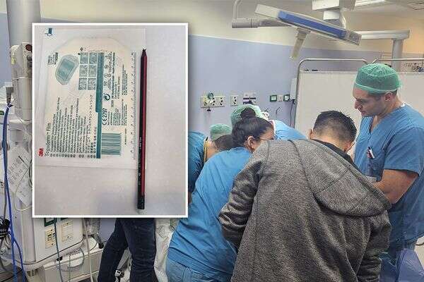 ד"ר מוני בניפלא, מומחה לנוירוכירורגיה ילדים, וד"ר ניתאי לוי, רופא בכיר במיון ילדים, שלפו את העיפרון לאחר פעולת טישטוש כדי למנוע מהילדה לחוש כאב במהלך הפעולה.