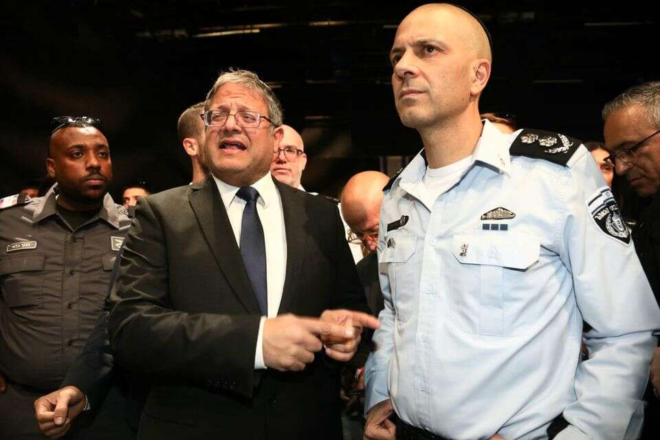 השר לביטחון לאומי איתמר בן גביר ונציב שב"ס רב גונדר קובי יעקובי, הופיעו היום (שני) לראשונה בפומבי מאז החלה פרשת מקורבי בן גביר, בטקס לזכר נספי אסון הכרמל.