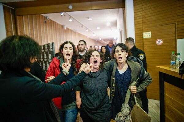 "אני אבא של חטוף, אני מבקש מכם לצאת מכאן, ולא להפריע לכנס הזה. בושה, חוצפה, משפחות חטופים זה קודש קודשים, תלוי באיזה צד של המפה הפוליטית הם נמצאים, צאו מכאן מיד".