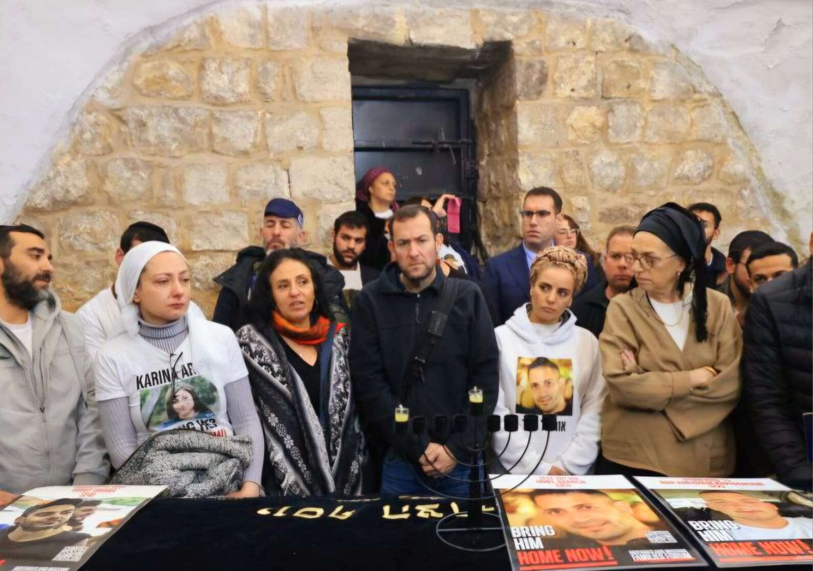 עשר משפחות חטופים קיימו אמש (רביעי) הדלקת נרות חנוכה משותפת ותפילה עם מח"ט שומרון אריאל גונן וראש מועצת שומרון יוסי דגן בקבר יוסף בשכם.
