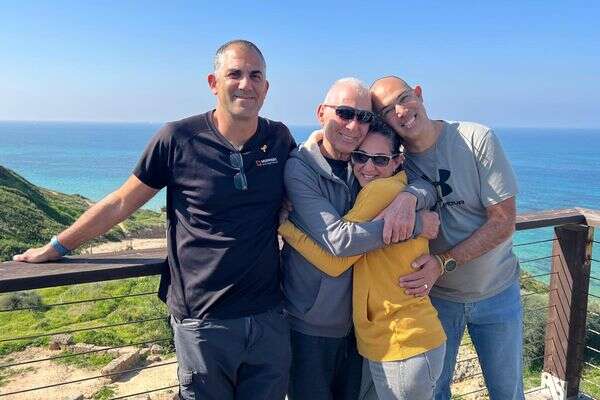 שורד השבי גדי מוזס, בן ה-80 ששוחרר בשבוע שעבר משבי החמאס, שוחרר היום (חמישי) מבית החולים איכילוב. בתמונה ששיתפה המשפחה נראה מוזס מחוץ לבית החולים לצד ילדיו מורן, יאיר ועודד.