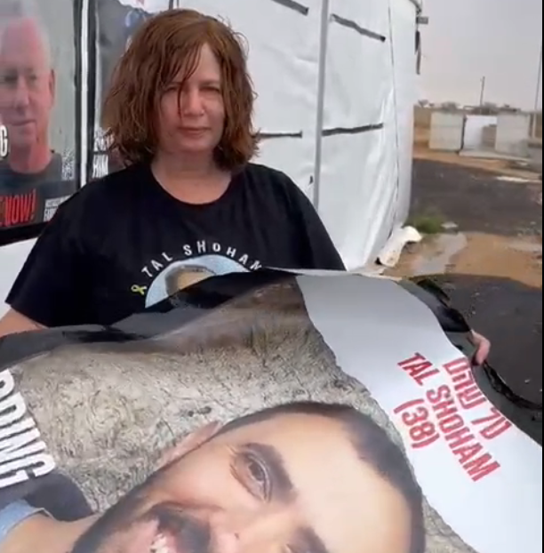 חברי הקיבוץ העלו לאינסטגרם סרטון מרגש, בו נראית רעיה רותם, שנחטפה יחד עם בתה והושבה אחרי 54 ימים, מסירה את תמונתו של טל מקיר עליו תלויות תמונות החטופים.