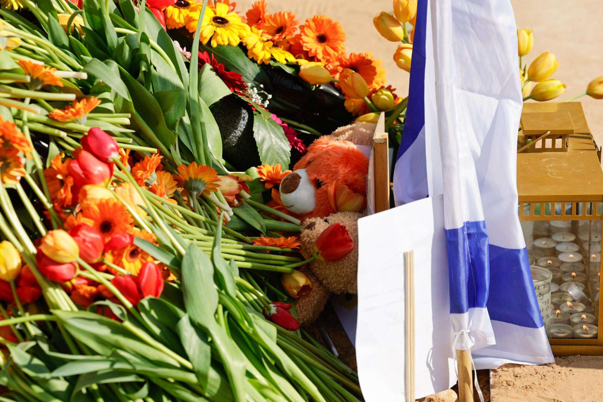 זרי הפרחים שהונחו על קבריהם של שירי, אריאל וכפיר, בהלוויה