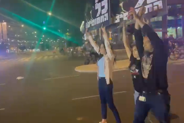 עם שלטים, באמצע הכביש: במסגרת מחאת משפחות החטופים מול בניין הקרייה, מחאת "עוטף קריה", אימו של מתן צנגאוקר שחטוף בשבי חמאס כבר 527 ימים, עמדה הערב (שני) באמצע צומת בגין המרכזית, וחסמה את כניסת הרכבים לבניין הקריה. צפו: