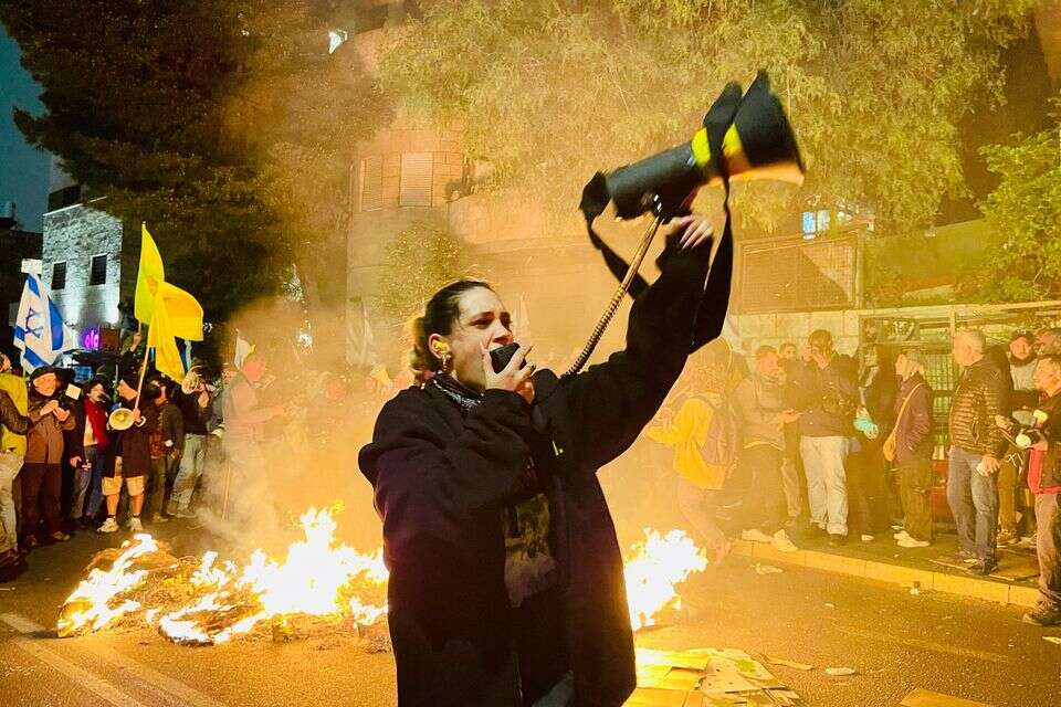 המשטרה טענה כי ההצתה סיכנה את המפגינים עצמם. המחאה בירושלים, היום | דוברות המשטרה