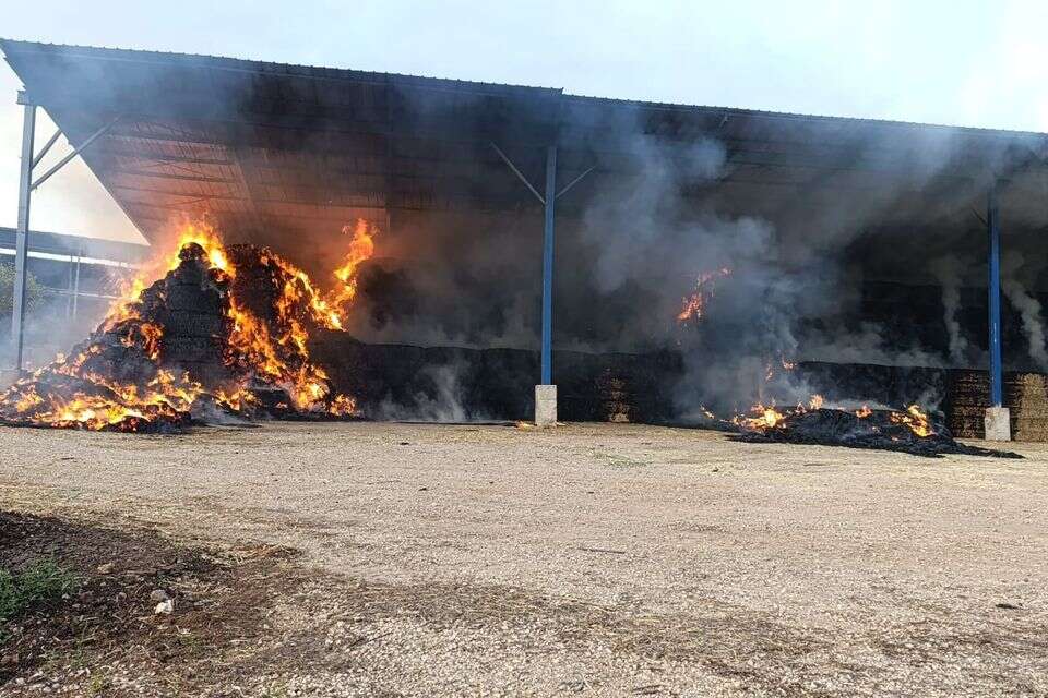 שריפה פרצה במתבן בקיבוץ אילון הבוקר, צילום: דוברות כיבוי והצלה