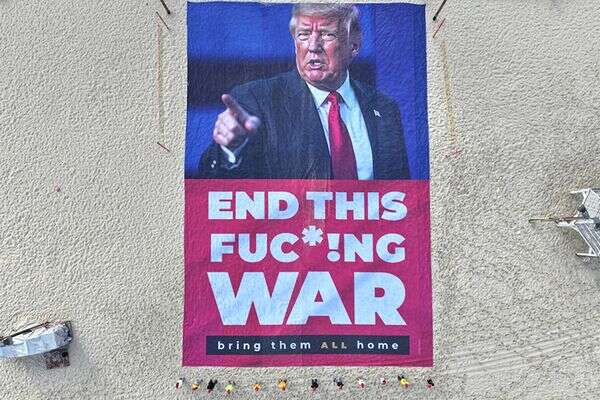 דגל ענק נפרש כעת על חוף הים מול שגרירות ארה"ב בת"א. על הדגל מתנוססת תמונתו של הנשיא טראמפ ולצידה הקריאה לסיום המלחמה והחזרת כל החטופים, המופצת בימים אלה במסגרת הקמפיין הציבורי END THIS FUC×ING WAR!