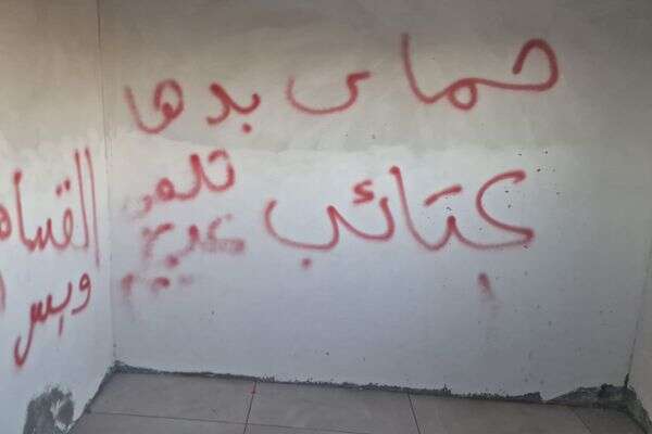 התקרית התרחשה בשבוע שעבר, אז בסיור אקראי באתר "חושן צפון" ביישוב יקיר התגלו הכתובות. צילומים של הכתובות הועברו לבדיקה ולאחר שהתברר שמדובר בכתובות הלל לחמאס ולסינוואר עודכנו כוחות הביטחון.