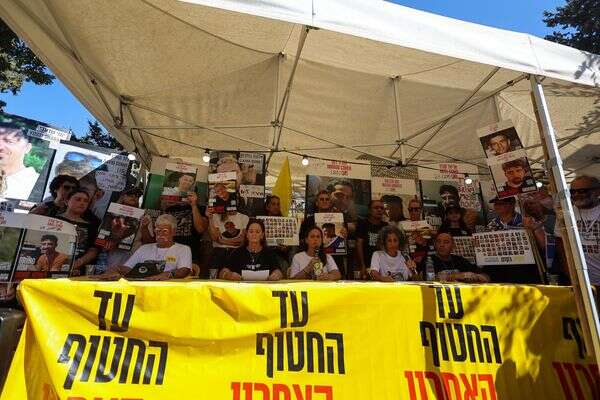 משפחות חטופים מוסרות הצהרה בשעה זו (רביעי) מחוץ למעון ראש הממשלה בירושלים, במסגרת יום המחאות למען שחרור החטופים. המשפחות הודיעו מוקדם יותר על הקמת מאהל המחאה מול ביתו של נתניהו.