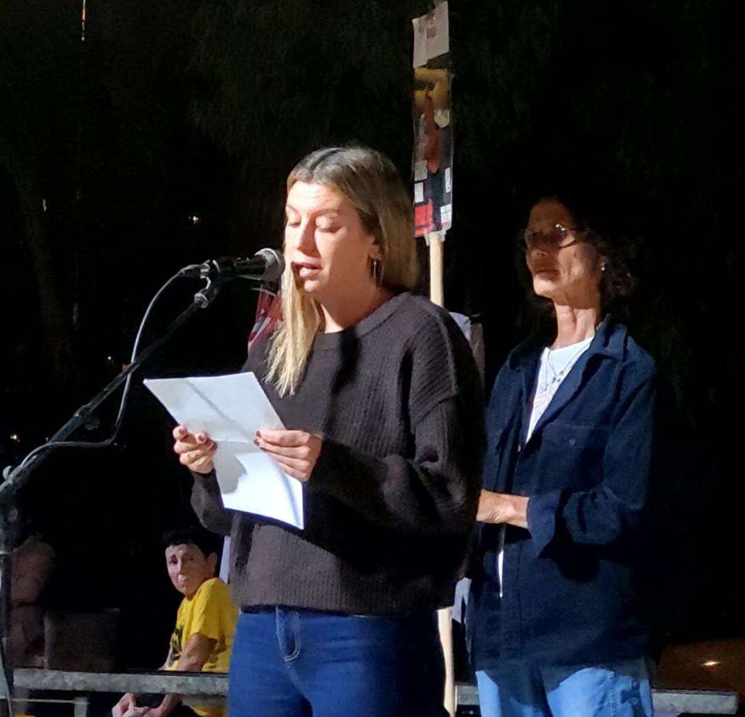 בר, בתו של החטוף החלל מני גודארד: "כל כך קיוויתי שלא נצטרך להגיע לפה גם היום. אני ואתם. קיוויתי שאוכל לאכול ארוחת ערב רגילה עם המשפחה, להשכיב את הבנות שלי לישון. קיוויתי שאוכל כבר להתכנס פנימה ולעכל את כל מה שעברנו כולנו בשנתיים האחרונות".