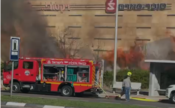 שריפה פרצה הבוקר (ראשון) בקניון שבעת הכוכבים בהרצליה. מתיעוד של עובר אורח שנסע ברכבו ניתן לראות את צוותי הכיבוי נלחמים בלהבות.