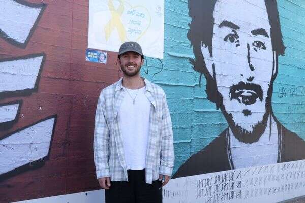 שורד השבי עומר שם טוב נפרד מהגפריטי שציירו עליו כשהיה בשבי, צילום: דוברות עיריית הרצליה