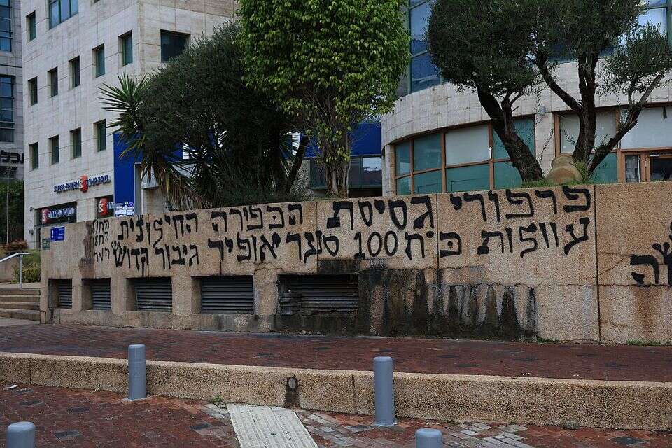 בכניסה לבניין רשת 13 ברמת החייל רוססה הכתובת: “דם הבוגדים עוד יותר לפרסום” // ללא