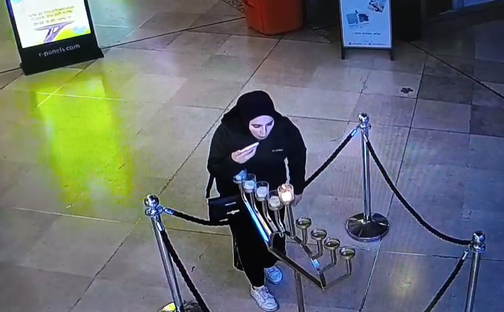 תיעוד שהופץ ברשתות החברתיות מציג צעירה מוסלמית יורקת לעבר חנוכייה דולקת שהוצבה בקניון ויצמן בתל אביב, לעיני עוברים ושבים. בתיעוד נראית הצעירה, בחברת גבר נוסף, ניגשת לחנוכיה בקניון ומכבה אותה בנשיפה. בסרטון נראים השניים עוזבים, מחוייכים. בהמשך היא נראית חוזרת, ניגשת שוב אל החנוכייה, מכוונת את הנייד ונושפת על השמש פעם נוספת.