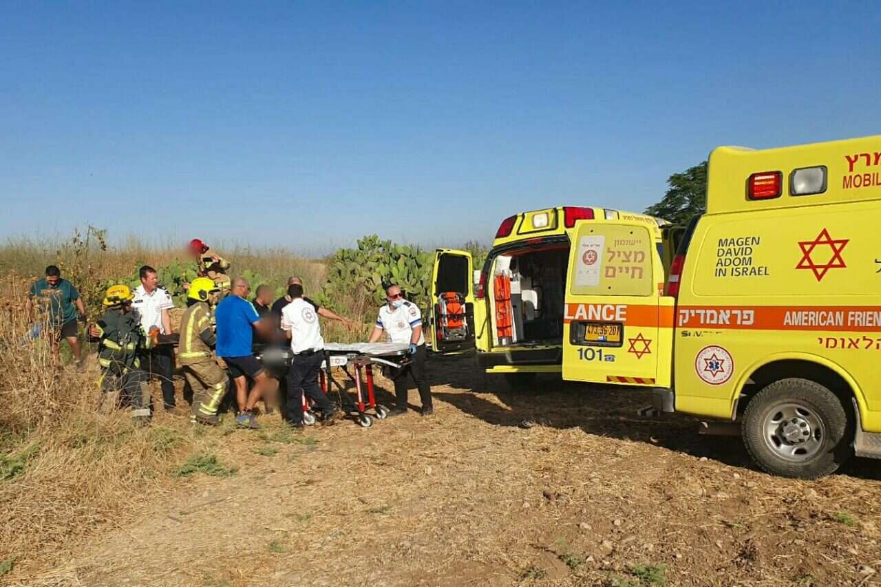 ד"ר אלי יפה, סמנכ"ל קהילה במד"א, שהגיע לזירה סיפר: "רוכבי אופניים שהבחינו בהתרסקות כיוונו אותנו לזירה, ראינו את כלי הטיס הזעיר שהתרסק ובסמוך שכבו שני גברים כבני 50 בהכרה, הם סבלו מחבלה רב מערכתית. הענקנו להם טיפול רפואי מציל חיים בשטח, ופינינו אותם בניידות טיפול נמרץ לבית חולים כשמצבם קשה".