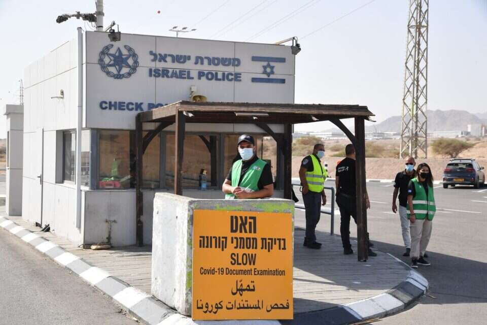 מחסום בדיקת מסמכי קורונה בכניסה לאילת, ב-2020 | צילום: יהודה בן יתח