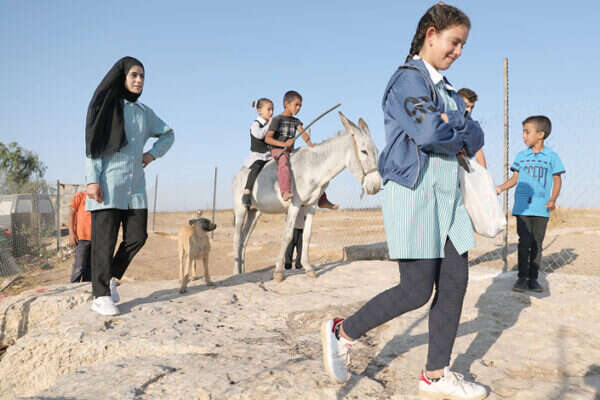 יום ראשון ללימודים בבית ספר בדרום הר חברון, אתמול | צילום: אי.פי.איי