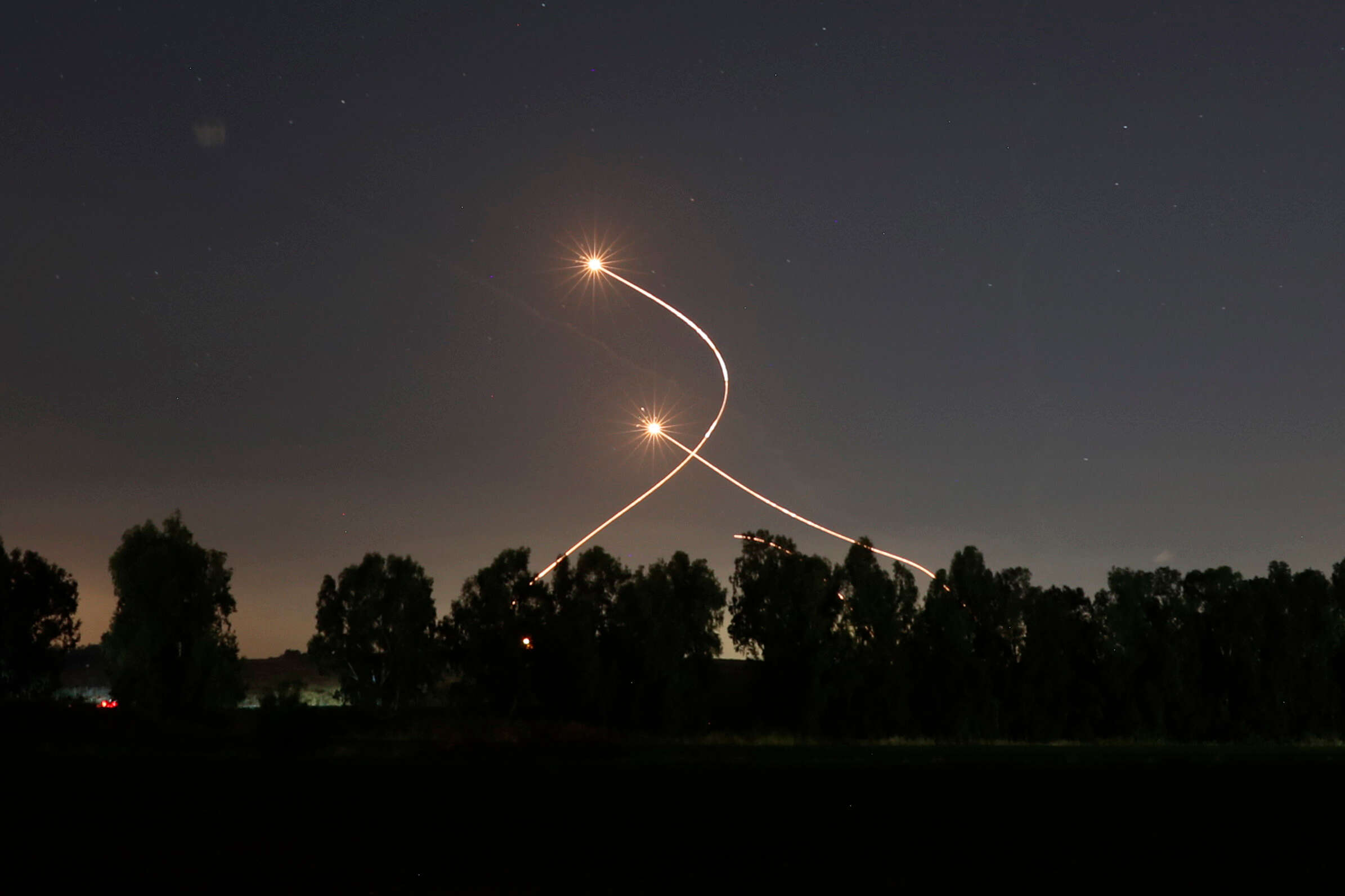 טילי כיפת ברזל בשמי עוטף עזה | צילום: אי.פי.איי