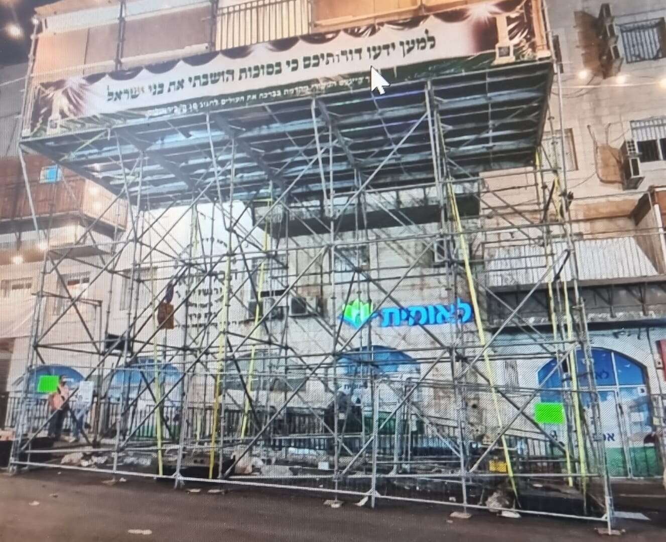 קונסטרוקציה מסכנת חיים, שהוקמה לצורך בניית סוכת ענק, פורקה הלילה (בין שבת לראשון) בירושלים למען בטיחות התושבים. הקונסטרוקציה המסוכנת, שהורכבה בגובה של 12 מטר בשכונת מאה שערים בירושלים, חסמה חלק מנתיב הנסיעה ברחוב וגרמה להפרעה קשה לתנועה.