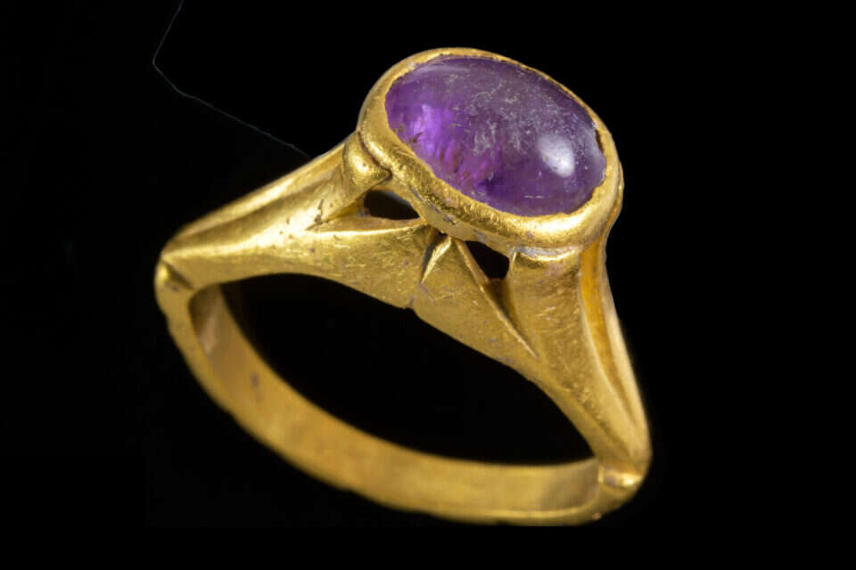 טבעת זהב עתיקה ומרהיבה עם שיבוץ של אבן חצי יקרה נחשפה היום (שלישי) בחפירת רשות העתיקות ביבנה שמתנהלות במסגרת יוזמת רשות מקרקעי ישראל להרחבת העיר בשיתוף עם עיריית יבנה. באתר התגלה, בין השאר, יקב לייצור יין - הגדול ביותר בעולם מהתקופה הביזנטית.