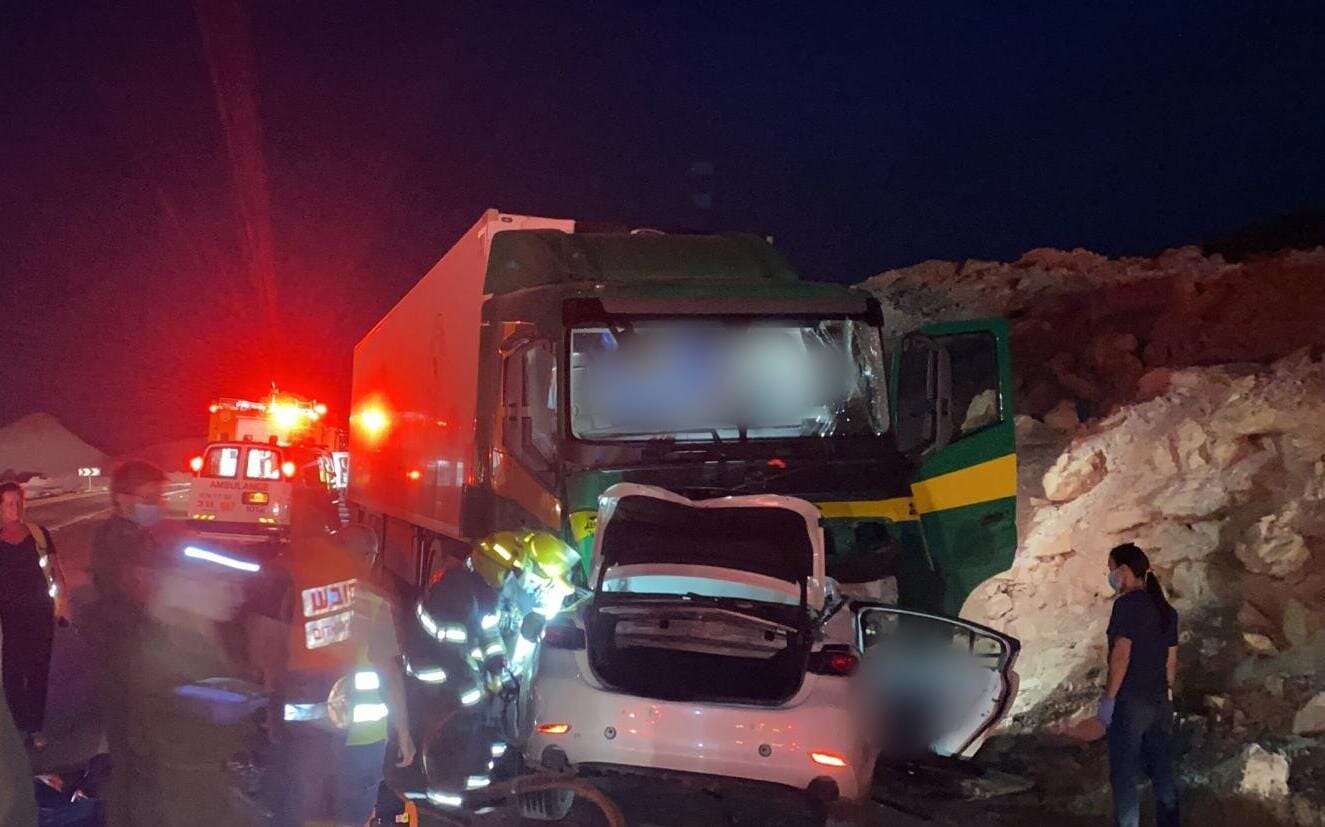 שני גברים כבני שלושים נהרגו בתאונת דרכים שאירעה הערב (רביעי) בכביש הערבה בין רכב פרטי למשאית. בתאונה נפצע גם נהג המשאית באורח קל.