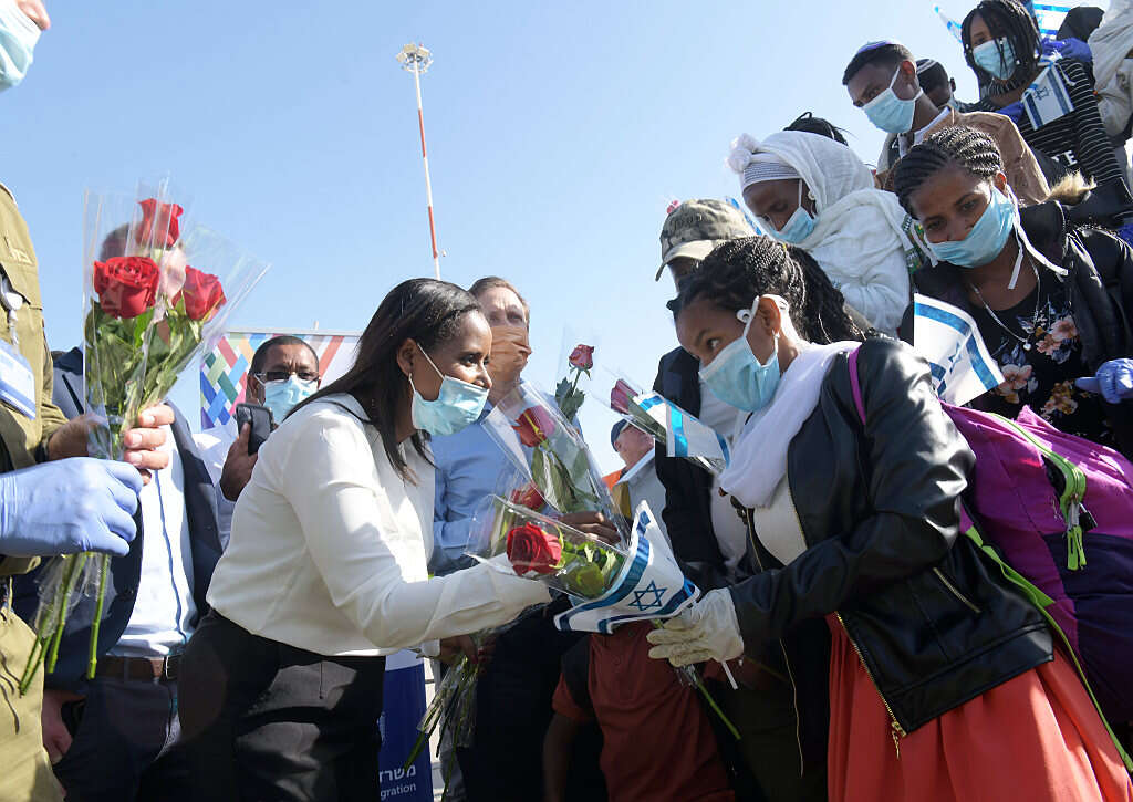 פנינה תמנו-שטה עם עולים מאיתיופיה. ארכיון | צילום: יוסי זליגר
