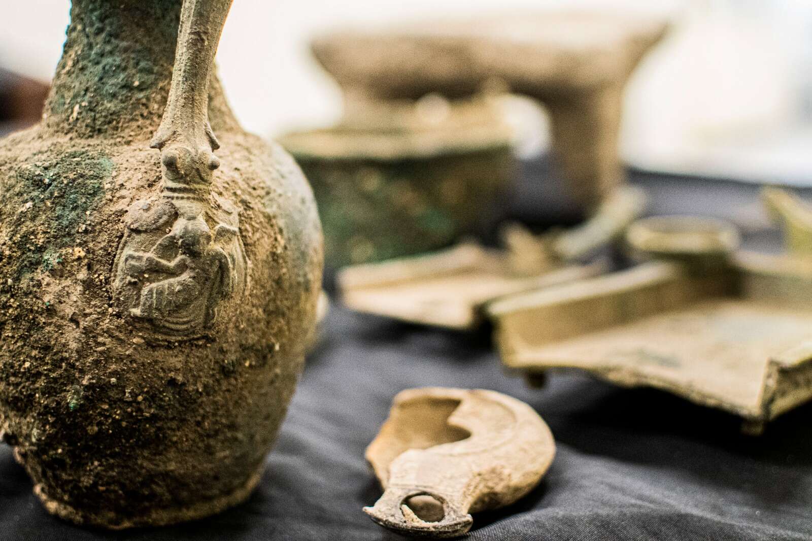 בין השאר, נתפסו שתי מחתות ברונזה מעוטרות בנות 2,000 שנה, אשר שימשו להבערת קטורת בטקסי פולחן והיו נפוצים בבתי אצילים רומאים ובמקדשים. נוסף להן, התגלה פך עשוי ברונזה ששימש למזיגת יין, ועליו מתוארת סצנה של משתה רומאי עם דמות אדם השוכבת ומסבה להנאתה כשבידה פך יין. כמו כן, נתפסו קערת אבן מעוטרת בעלת שלוש רגליים, נרות חרס רומיים, ומאות מטבעות המתוארכים לתקופה הרומית המאוחרת – המאות השנייה והשלישית לספירה.