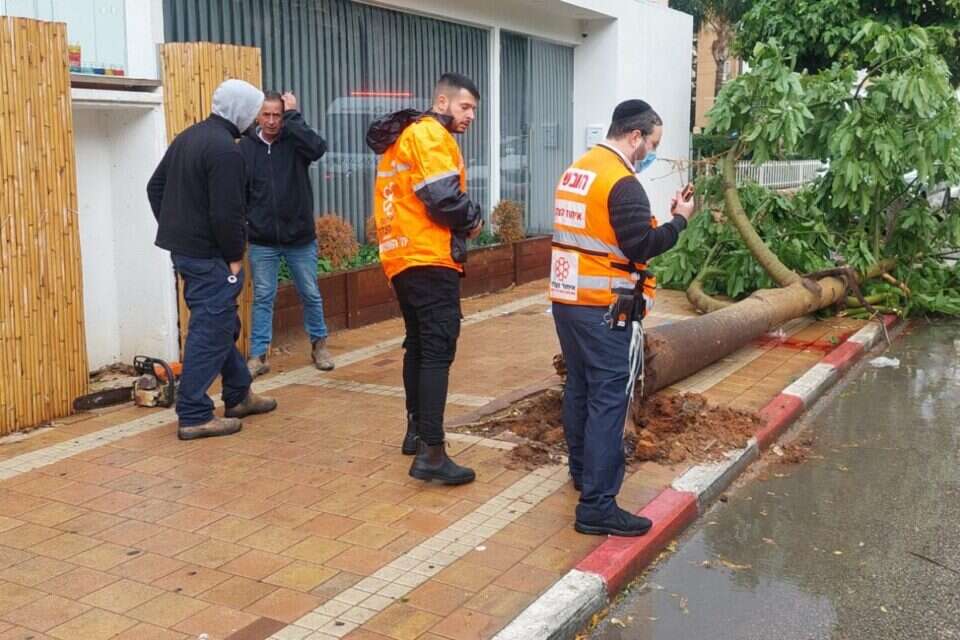 13:23 - התקבל דיווח במוקד של מד"א במרחב כרמל על עץ שקרס ברחוב סירקין בחיפה. חובשים ופרמדיקים של מד"א שהגיעו למקום סרקו את הרכבים ולא אותרו נפגעים.
