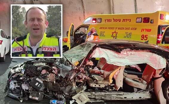 חיים הר-כסף וזירת התאונה בכביש 6 // צילום: איחוד הצלה, דוברות מד"א // חיים הר-כסף וזירת התאונה בכביש 6