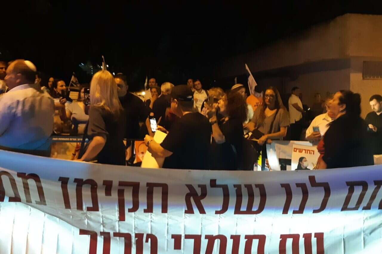 על רקע המשא ומתן בין בנט ולפיד, עשרות מפגינים הגיעו לביתה של שרת המשפטים לשעבר ודרשו ממנה להודיע שלא תצטרף לממשלת שמאל • "את נותנת לאחמד טיבי תמונת ניצחון עלינו"