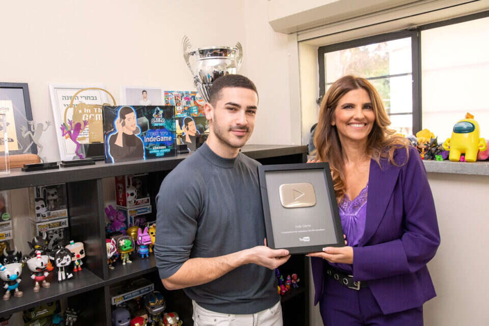 עם פרס מיוטיוב שבו זכה תלם | צילום: מישל דוט קום