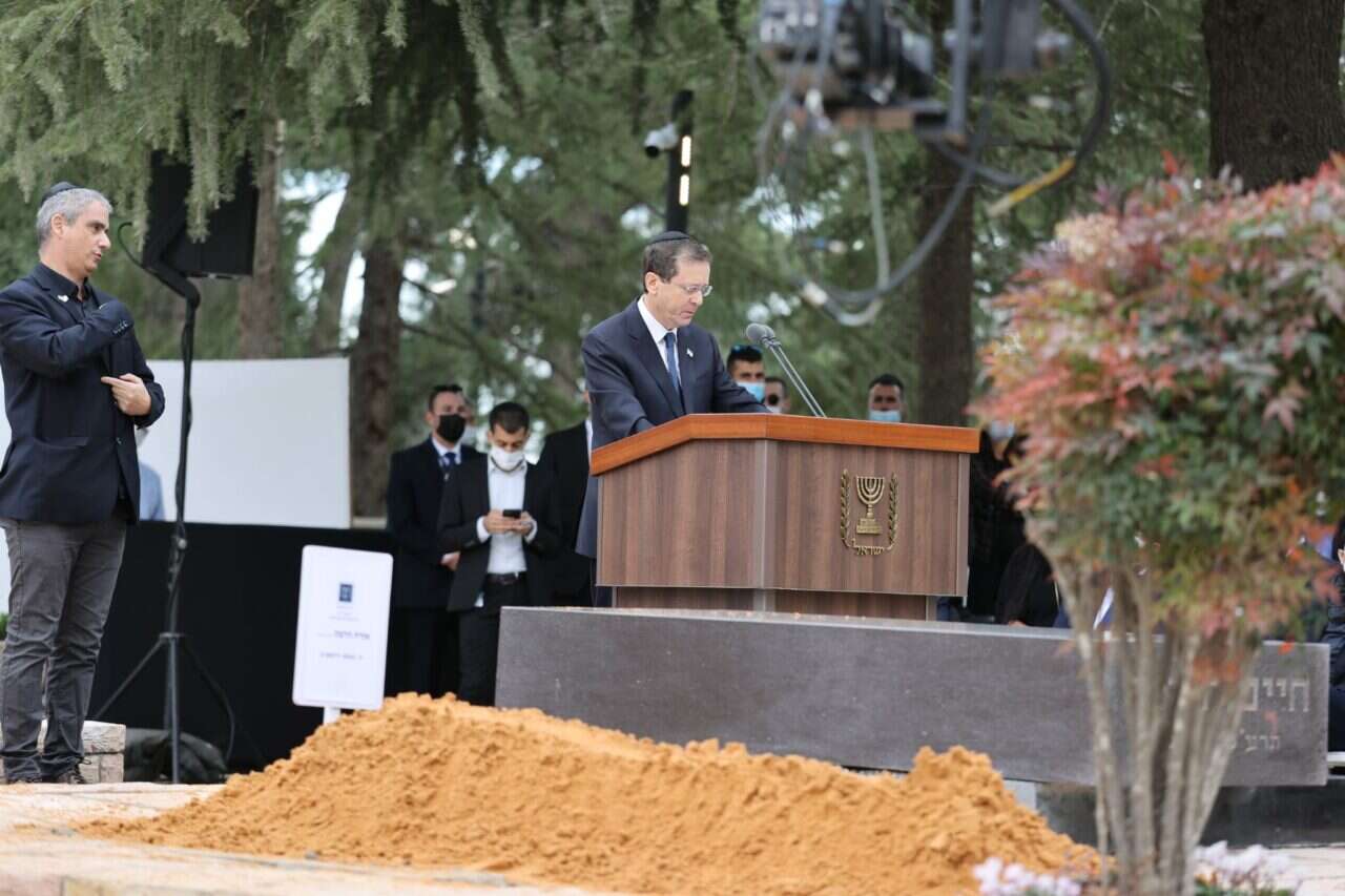 מוקדם יותר הנשיא הרצוג חלף על פני ארונה של אימו כשהוא מלווה על ידי רעייתו מיכל, אחיו מייק, יואל ורונית וכן קרובי משפחה נוספים.