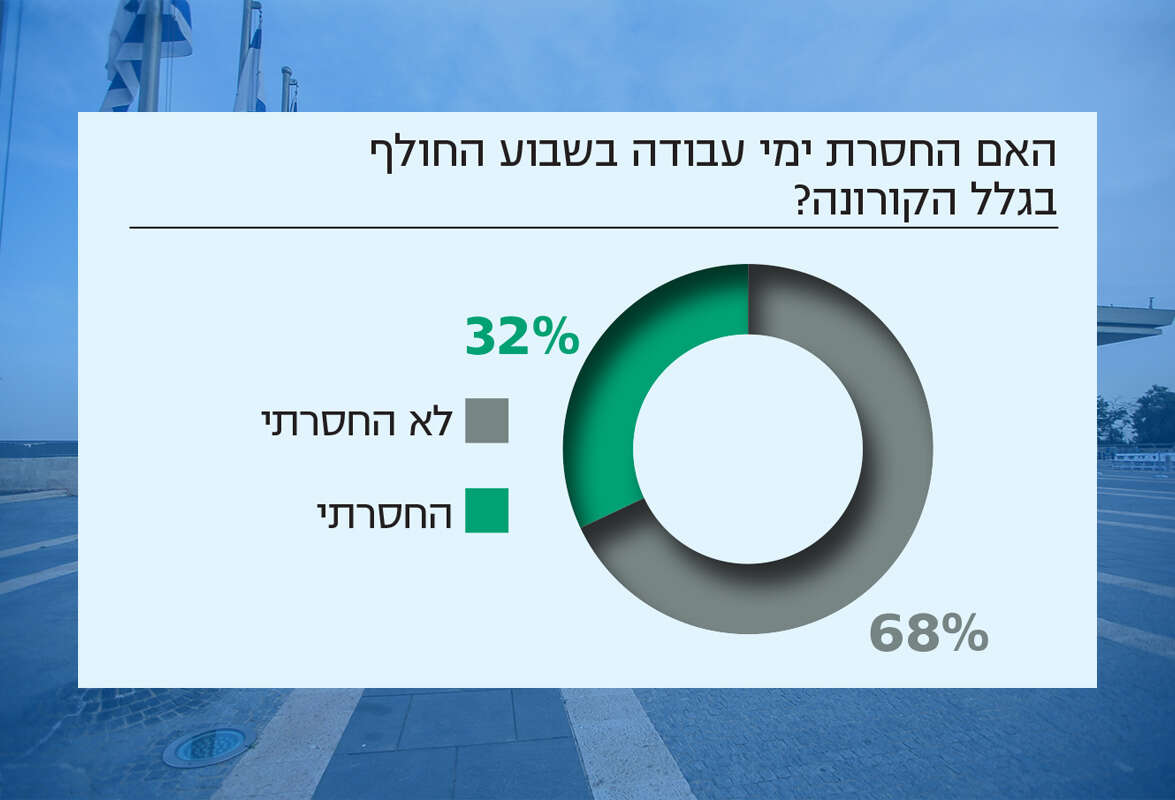 כשליש מהישראלים העובדים (32%) מעידים כי החסירו ימי עבודה בשבוע האחרון, ורק כשליש מהישראלים (27%) מעידים שילדיהם לומדים בשבוע האחרון בבתי הספר. היתר מעידים כי ילדיהם לא למדו כלל (20%) או למדו רק באופן חלקי (53%), כך עולה מסקר "ישראל היום", שנערך השבוע על ידי פרופ' יצחק כ"ץ מ"מאגר מוחות" בקרב 508 משתתפים בני 18 ומעלה מכלל האוכלוסייה הישראלית הבוגרת.