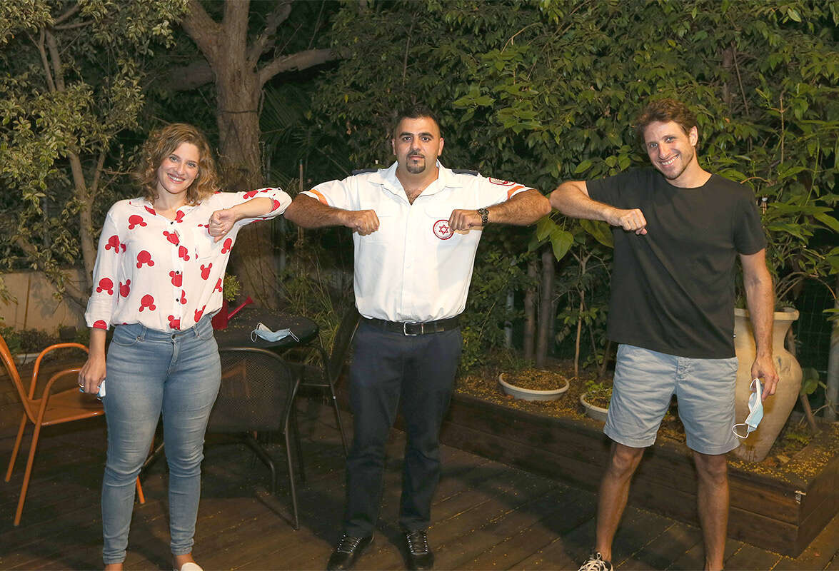 גיל, אחמד הפרמדיק ודנה // צילום: עמי שומן // גיל, אחמד הפרמדיק ודנה אשתו